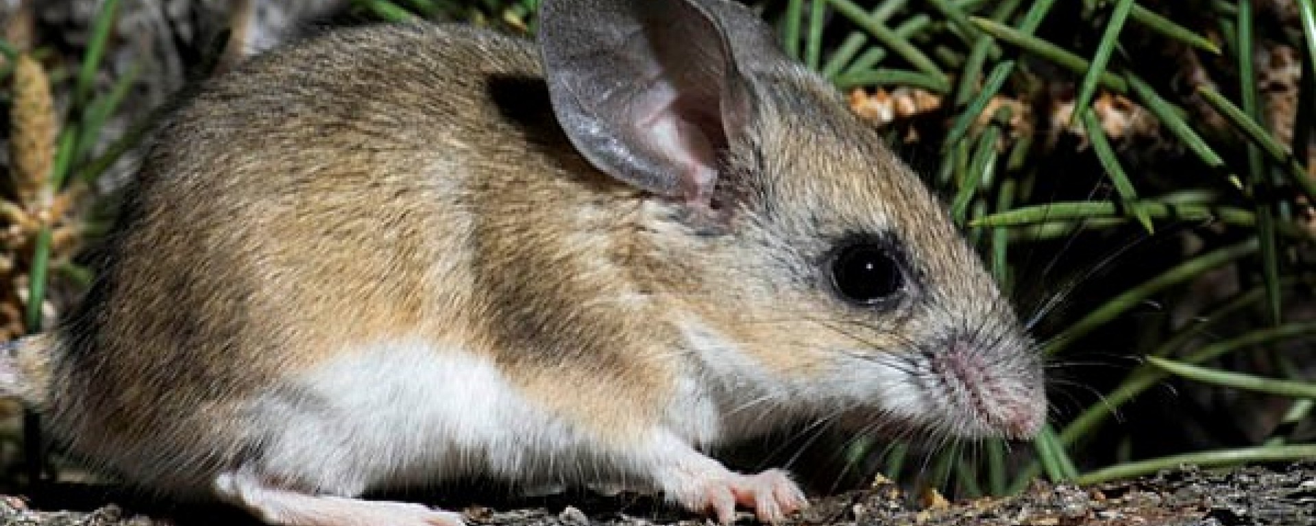 Like many other common rodents in the Sandias, piñon mice are nocturnal and not often seen. The distinguishing feature of this mouse is its huge ears. They eat piñon nuts when they can find them, as well as insects and other nuts and berries.